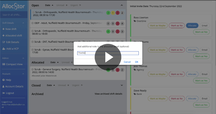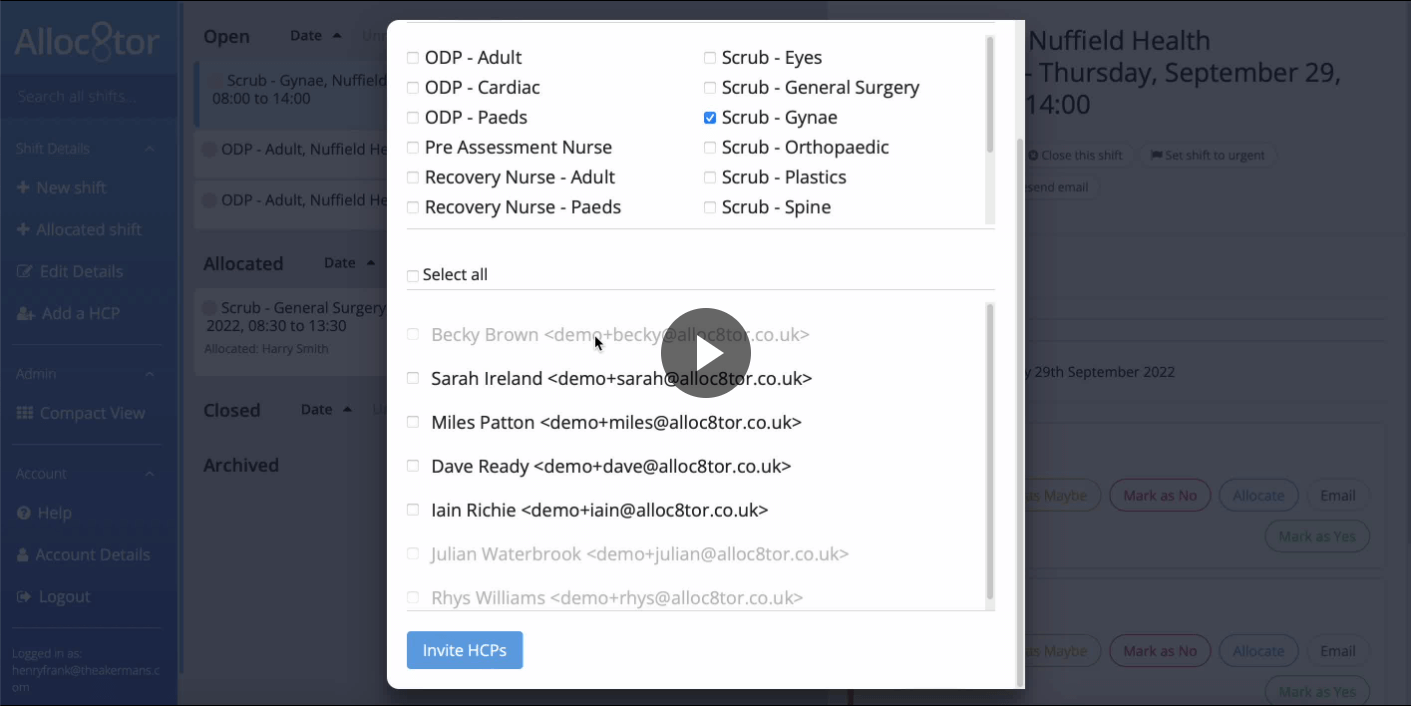 Inviting additional HCPs to a shift